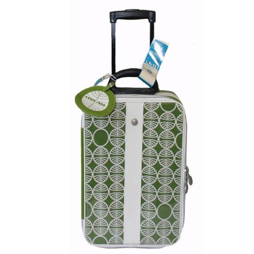 Product DescriptionPan Am Vintage-Style 21" Trolley Rolling Suitcase. The Globe Print Collection by Pan Am succeeds in transforming our world famous logo into a fun, funky pattern that makes Pan Am just as cool and relevant today as it was fifty years ago. These fashion pieces are a sure find on the airport conveyor belt. 21" piece is carry-on size. Combine it with the matching 16" and 25" for a complete set. With three sizes available, you are sure to want the complete set for all your travel needs. 21" Trolley features: Outer Shell Constructed of durable PU Satin lined interior Brushed nickel hardware YKK zippers for smooth action Each piece nests inside the other. Wheeled for easy maneuvering Retractable pull-along handle. Carry-on size for most airlines Dimensions: 21" x 14" x 7.5" Available in 3 colors